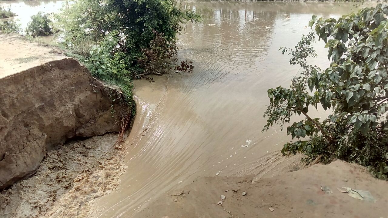 पहाड़ों पर हुई मूसलाधार बारिश के कारण महाव का पूर्वी तटबंध देवघट्टी गांव के सामने शुक्रवार की दोपहर डेढ़ बजे 10 मीटर टूट गया । इससे धान की खेती की तैयारी में जुटे किसानों के होश उड़ गए । नाले का पानी कटान स्थल के रास्ते खेत में रेत उड़ेलते हुए आगे बढ़ रहा है ।