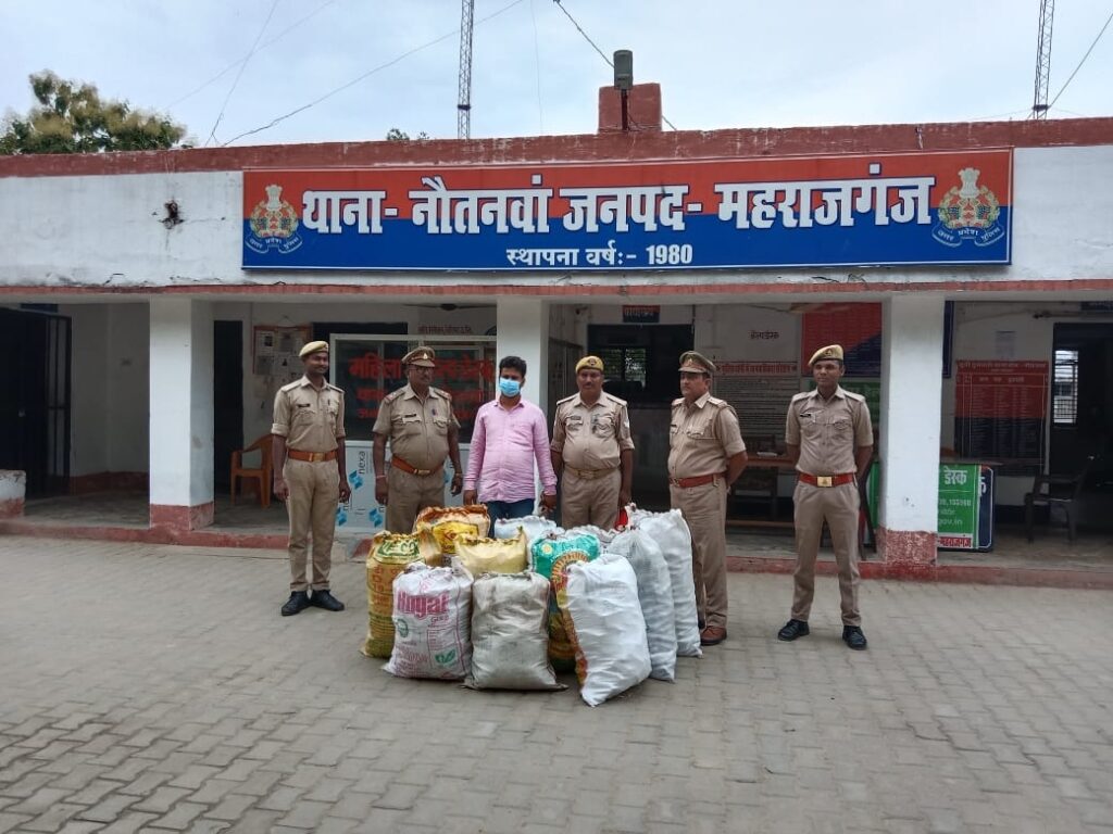 नौतनवा थाना क्षेत्र के अड्डा बाजार में पुलिस ने का स्थान पर छापेमारी कर भारी मात्रा में अवैध रूप से रखा गया