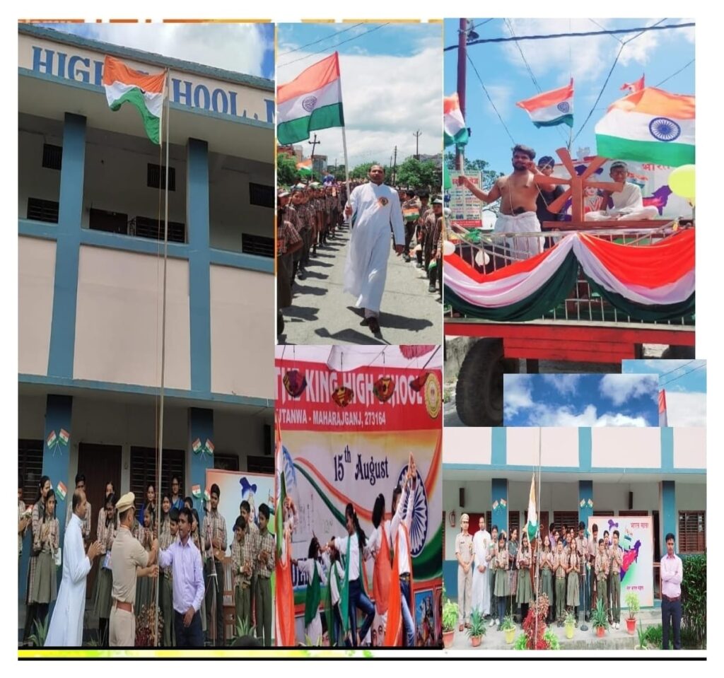 आज सोमवार को आजादी का अमृत महोत्सव कार्यक्रम विभिन्न सांस्कृतिक कार्यक्रमों के बीच स्वतंत्रता दिवस की 76 वी वर्षगांठ बड़े ही धूमधाम के साथ नौतनवा के छपवा स्थित क्राइस्ट द किंग हाई स्कूल मनाया गया।