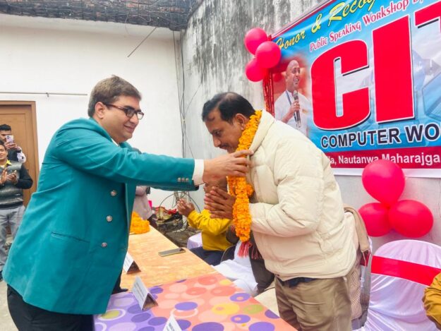 सीआईटी कंप्यूटर वर्ल्ड नौतनवा में अंतर्राष्ट्रीय मोटिवेशनल स्पीकर सतीश आनंद की पब्लिक स्पीकिंग (सार्वजनिक भाषण) के चार दिवसीय कार्यशाला के समापन अवसर पर बतौर मुख्य अतिथि नौतनवा नगर पालिका अध्यक्ष बृजेश मणि त्रिपाठी ने पब्लिक स्पीकिंग कार्यशाला में प्रतिभागी छात्र छात्राओं को प्रमाण पत्र वितरित किया और उज्जवल भविष्य की शुभकामनाएं दी।