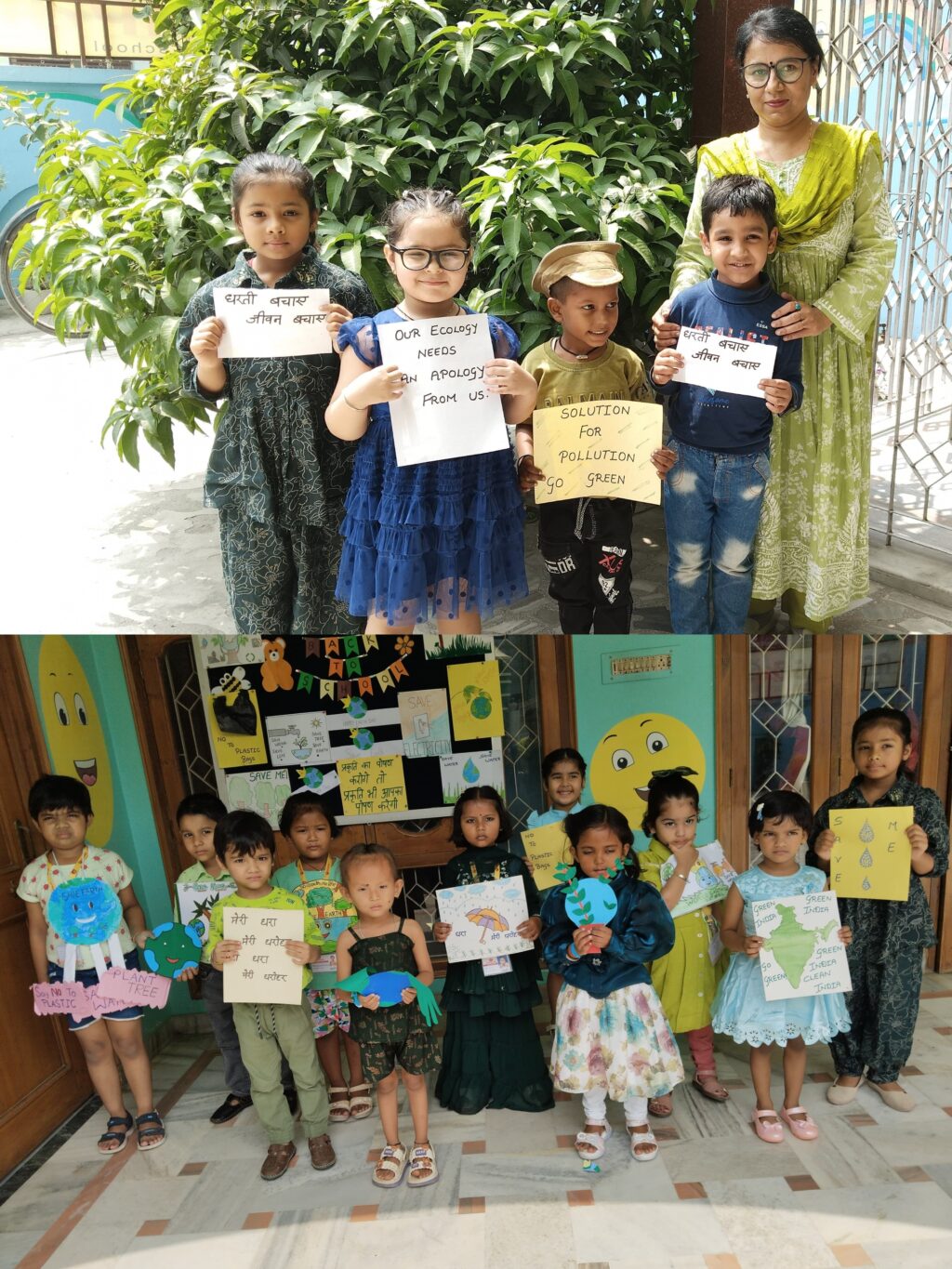 बच्चों ने स्लोगन और पोस्टर के माध्यम से अपनी बातों को प्रभावशाली तरीके से प्रस्तुत किया। उनके स्लोगन थे: प्रदूषण को ना कहें पॉलीबैग को ना कहें,केवल पेपर बैग का उपयोग करें,पेड़ों को बचाएं, पेड़ों को न काटें,पानी बचाएं,बिजली बचाएं